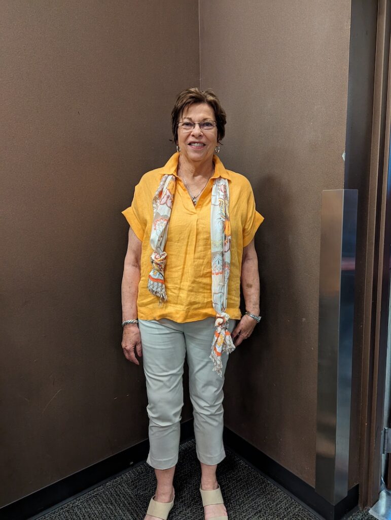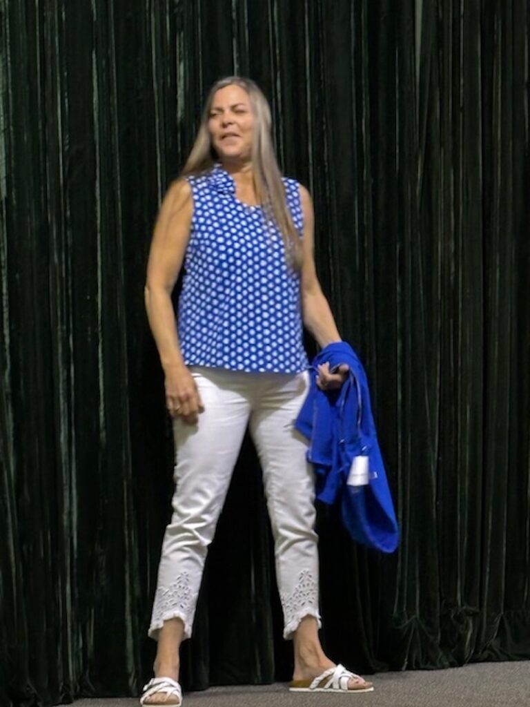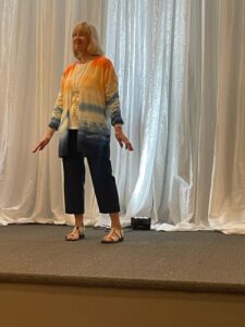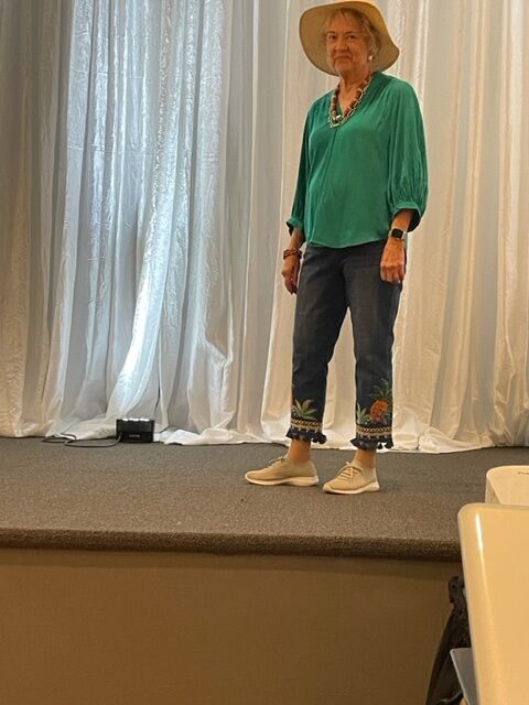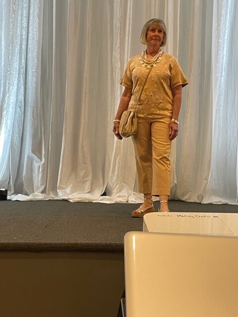 Colleen Marshall, Channel 4 TV evening anchor, moderated the fashion show, with Sharon Roman from Chico’s commenting on the clothes modeled by 12 Assistance League members.